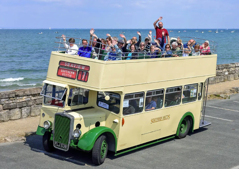 Ride on a vintage bus all over East Wight (including a few pubs!)
